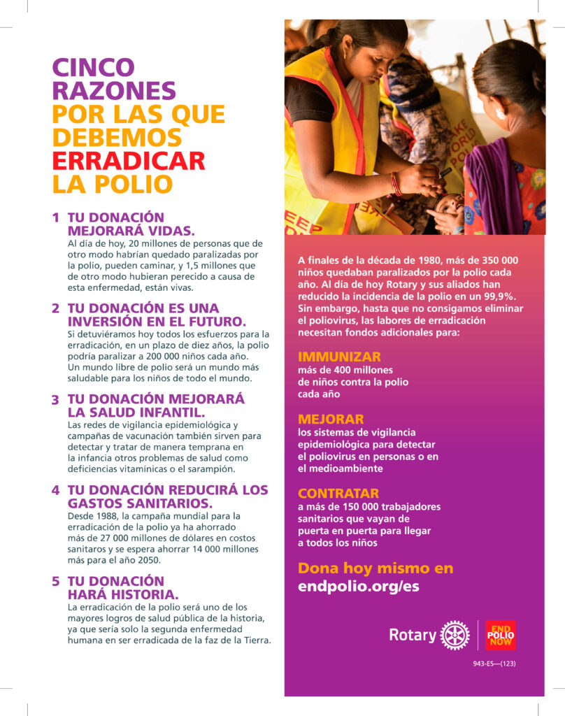 Rotary trabaja desde hace más de 35 años para erradicar la polio y hemos logrado grandes progresos en pos de un mundo libre de esta enfermedad.