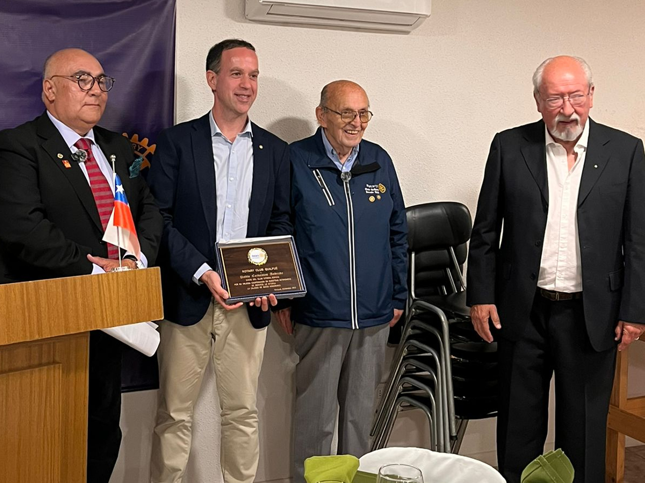 En la noche se realizó una cena en nuestro club con la asistencia de la alcaldesa y de nuestra Asistente de la Gobernación, señora Claudia Escalera. En la ocasión se inauguró una placa por el aniversario del hermanamiento con el club de Vitoria. Luego nuestro club entregó el título de socio honorario a Pablo Cervantes, seguidamente éste entregó un reconocimiento al club, a nombre de su presidente Jorge Inojosa, por su preocupación por el medio ambiente; además al socio Enrique Olavarría por la preocupación de la subvención y al socio Hermann Mies, quién en su parcela se ha preocupado de mantener árboles nativos para cuidar nuestra flora.